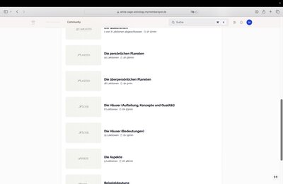 Im Community-Bereich kannst du dich mit anderen Teilnehmerinnen verbinden und ihr könnt euch gegenseitig Fragen stellen. Dort gibt es übersichtliche Untergruppen zu Themen wie "Prognose" oder "Astromedizin".