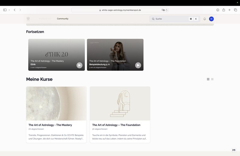 Alle Teilnehmer von "The Art of Astrology" erhalten ein von White Sage ausgestelltes Teilnahmezertifikat. Der Zugriff auf die Inhalte bleibt dauerhaft erhalten, solange die Plattform besteht.